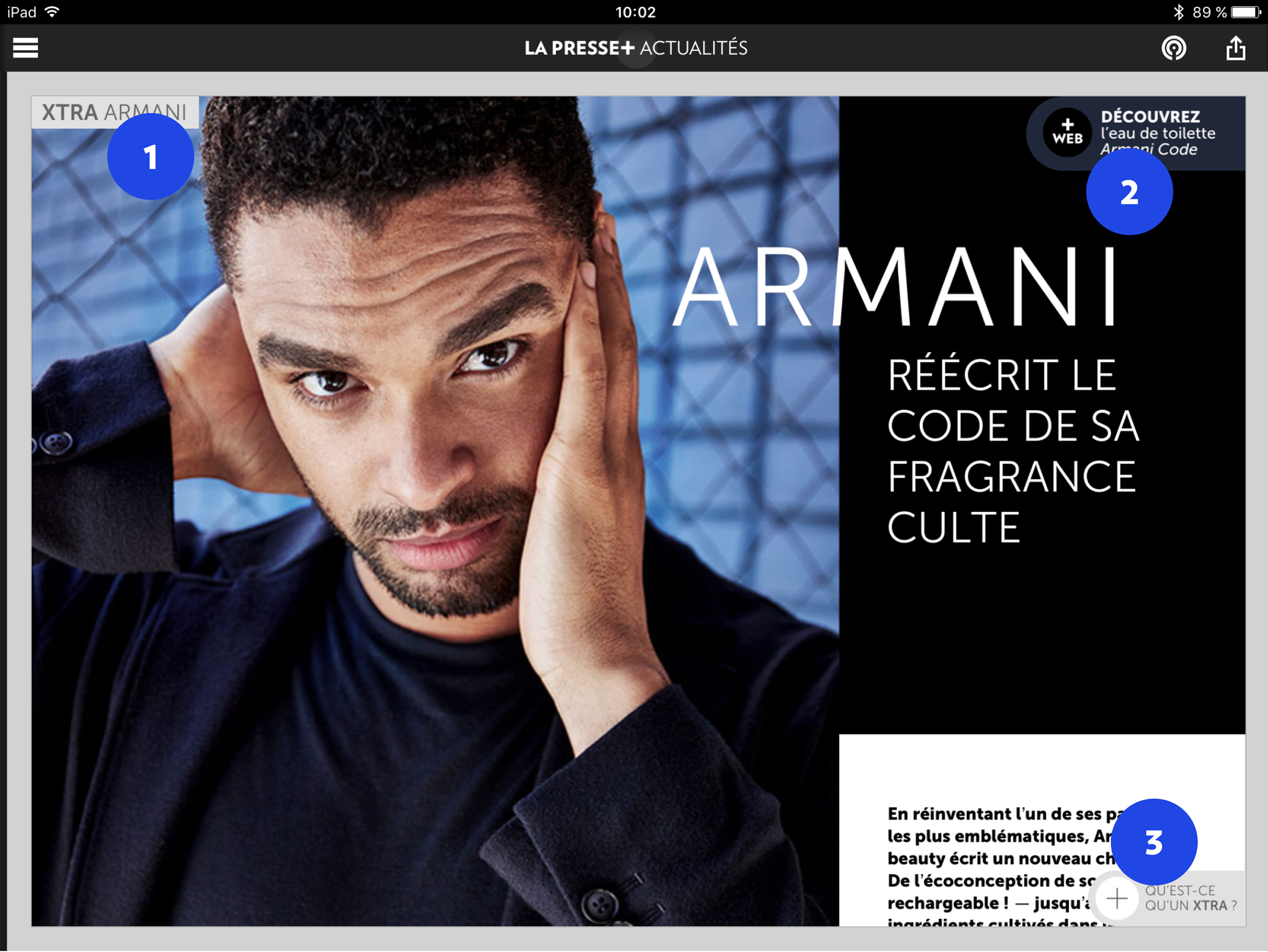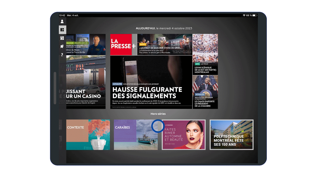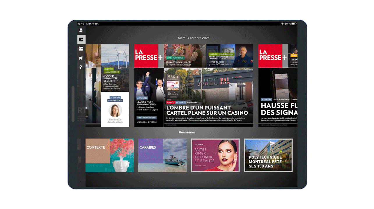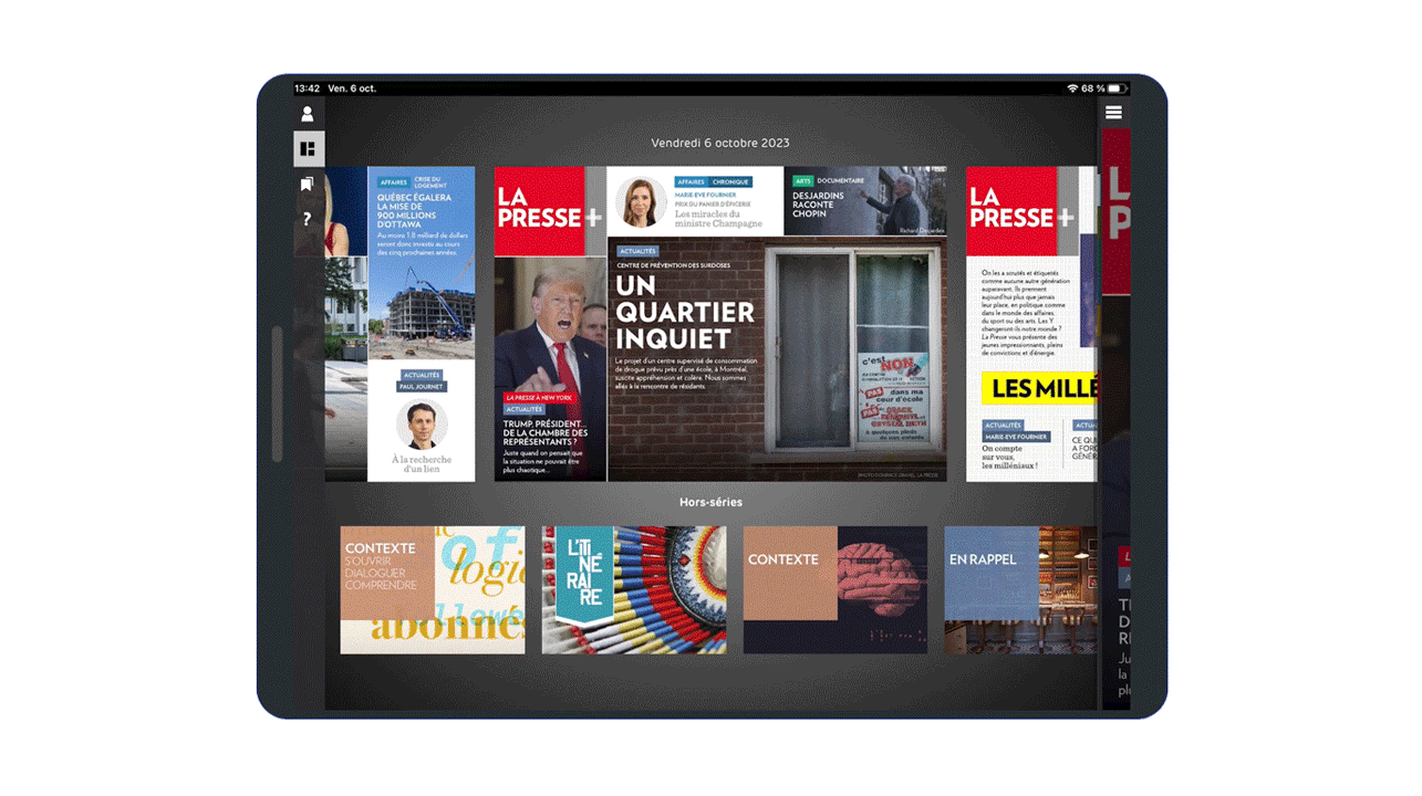 Once logged into the La Presse+ app for tablets, your XTRA is published in the section booked, identified with the "XTRA" tag and "What’s an XTRA?" pop-up.*